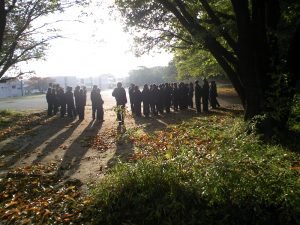 通勤途中の午前7時半頃、近所の中学校のグラウンドを通りがかると、吹奏楽部の生徒たちが朝練に集まっていた。近く大阪で行われるマーチングバンドの全国大会に出場するそうだ。地面に、整列の目印となる白線が引かれていた。長年、第二グラウンドとして地主さんから借り受けられていたというこの広い土地は、来春にも宅地造成がはじまるらしい。自分が子供の時分から変わらなかったこの景色も、とうとう見納めか。駅までの近道としてときどき横切らせてもらっていたのだけれど……。それよりマーチングの練習場所はどうするんだろうか?