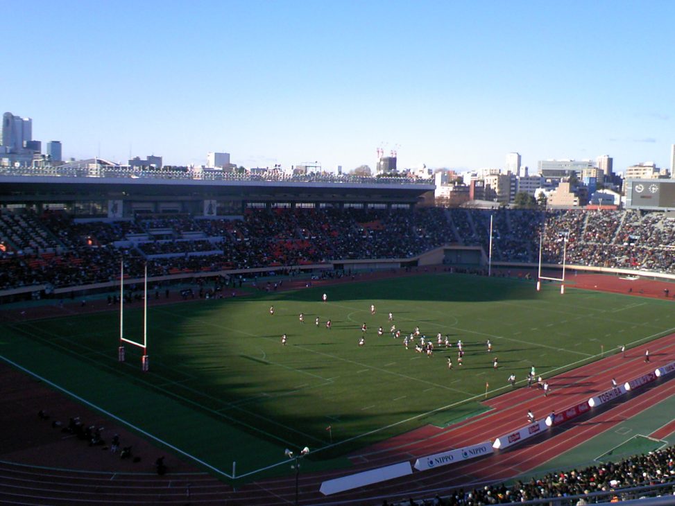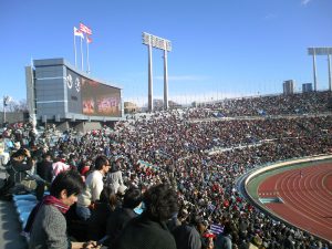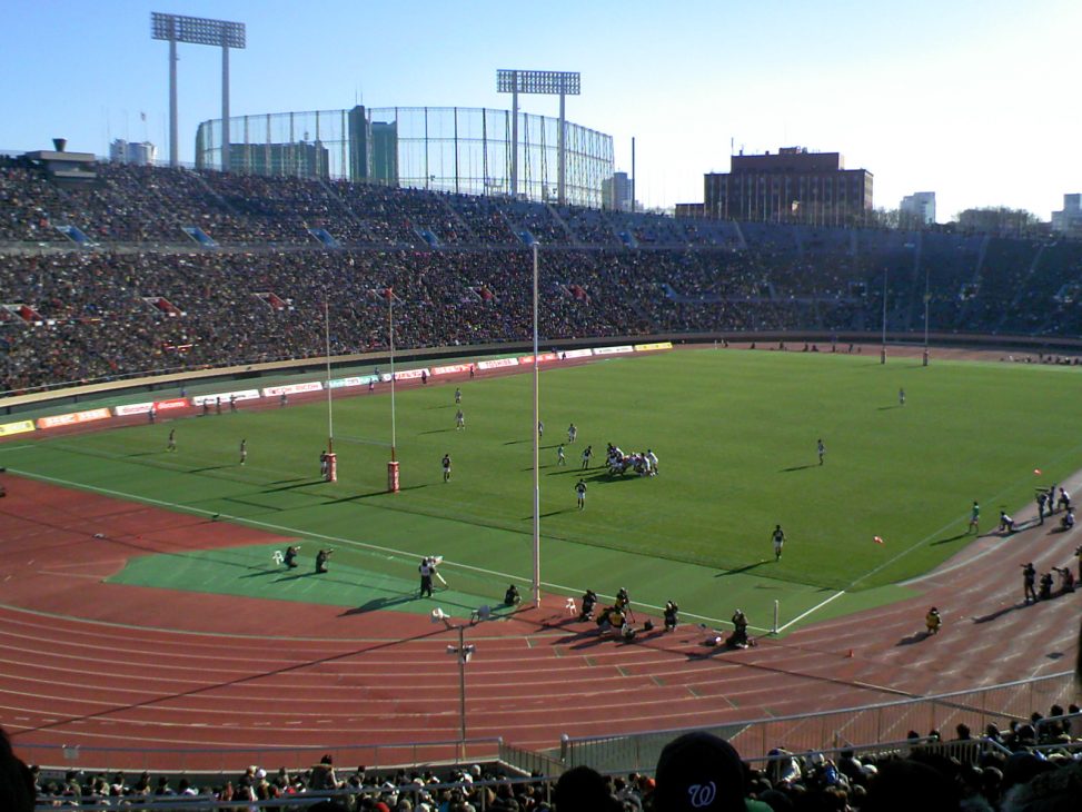 今季こそは明大ラグビーの復活なるかと、秋の慶明戦、12月の早明戦とスタジアムに通ったけれど、ついに正月の大学選手権準決勝まで観に行ってしまった。今回はなんと小4の倅が一緒に行きたいという。途中で飽きられてぐだぐだされたらかなわんと思い、「寒いよ」「2試合だから時間が長いよ」「テレビと違ってグラウンドの近くでは見られないよ」とネガティブファクターを並べ立てて、冷やかし半分なら思いとどまらせようとしてみたが、それでもいいというので国立競技場へ連れて行くことにした。早明戦の雪辱は果たされるのか、早稲田v明治は第二試合で2時のキックオフ。競技場に到着したときには東海大v帝京大の第一試合が始まっていた。